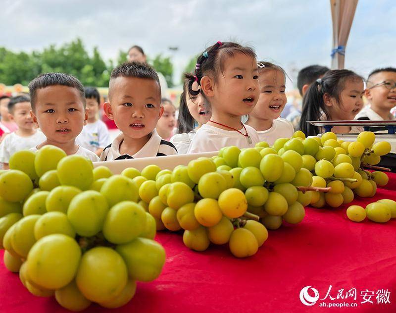 丰收的葡萄前,孩子们的笑脸真甜。人民网记者 张俊摄