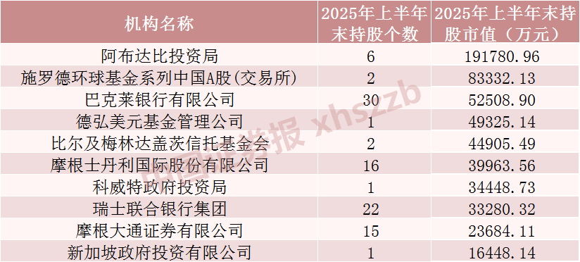 已披露2025年中报上市公司中持仓市值前十QFII机构