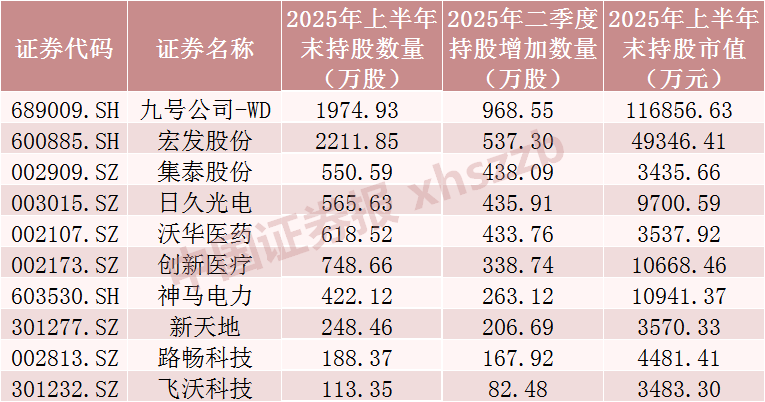 从持股增加数量情况看,数据显示,QFII二季度对18只股票持股数量增加。具体来看,持股数量增加最多的九号公司-WD获QFII加仓968.55万股;QFII对宏发股份、集泰股份持股数分别增加537.3万股、438.09万股。