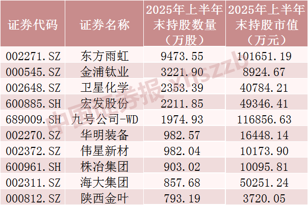 已披露2025年中报上市公司中QFII持股数前十股
